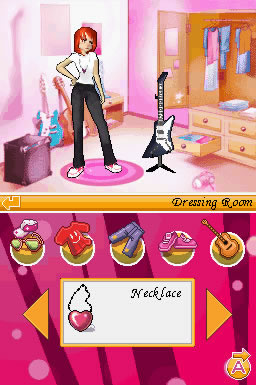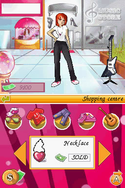 The player will have the opportunity to customize her avatar, changing clothes, hairstyle, hair color and outfit. The game counts also with an economic system that allows players to buy different clothes, accessories and instruments.